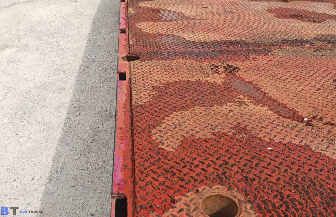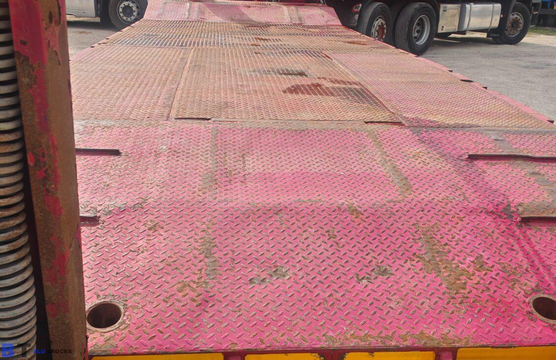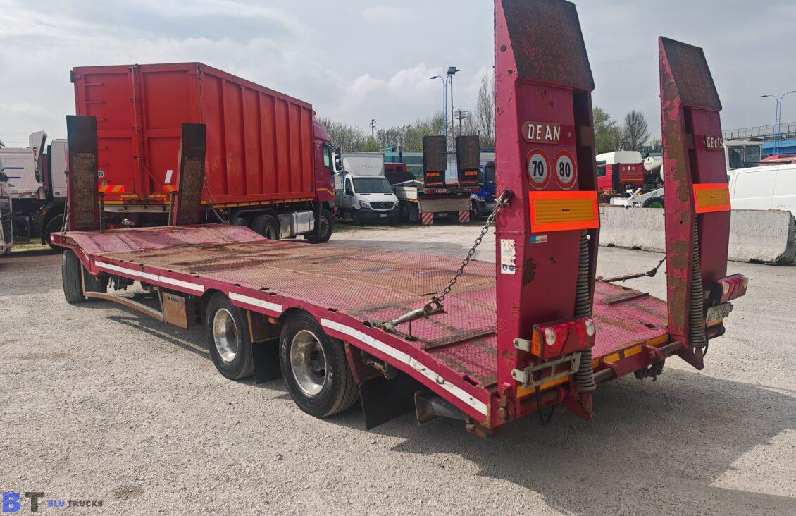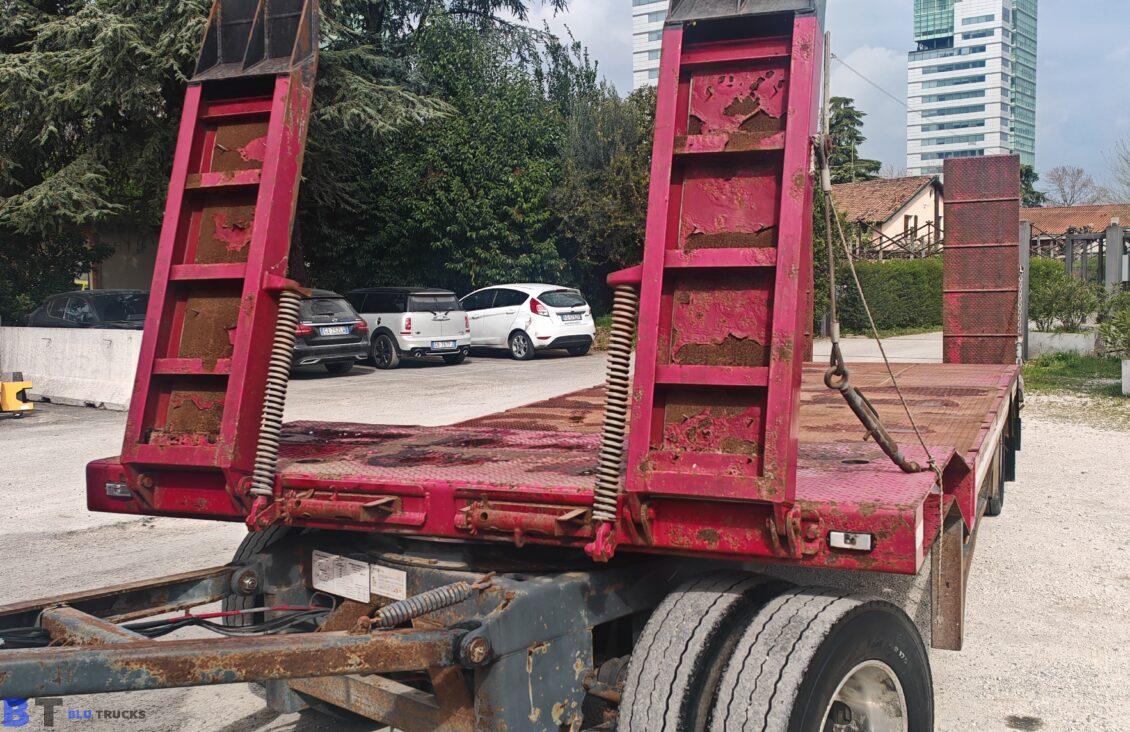 Rimorchio De Angelis pianale con rampe terzo asse sterzante con buche per piantane